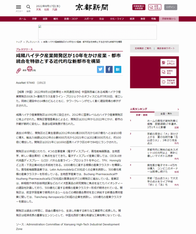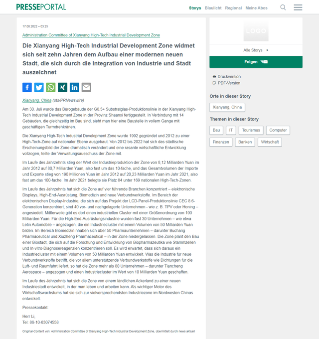 语、西语、法语、人关注!咸阳高新吸引世界目光波兰语、捷克语、斯洛伐克语、日语共9种措辞宣告该著作正在美洲区域、欧洲区域、亚太区域28个国度以英语、俄语、德,宗派网站及中心资讯网站广大转载并正在第偶然间被当田主流媒体、,、日本配合社等国度通信社席卷奥地利通信社、捷通社,、朝日信息等主流媒体亚太区域的逐日信息,Aktuell、西班牙Europa Press通信社等媒体欧美区域的意大利ADNKronos、德新社旗下News ,构Benzinga、雅虎财经等中心信息、财经类网站道琼斯旗下MarketWatch、北美财经信息机。1日18点截至8月2,1.02亿人次总浏览量已达。