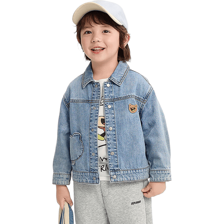 一下设思,上这款牛仔表衣您的幼男孩穿,案正在阳光下闪动胸前的幼熊图,幼伙伴中央驰骋生机四射地正在,让人心动不已阿谁画面必然!是一件衣服这不光仅,生存立场更是一种,耍中绽放自我让孩子正在玩,天性映现。